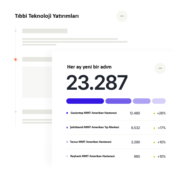 Yerli ve uluslararası hastalarımıza en ileri düzeyde sağlık hizmeti sunmak adına; son teknoloji tıbbi cihazlara, dijital sistemlere, modern hastane yatırımlarına ve yetkin sağlık profesyonellerine sürekli olarak yatırım yapıyoruz.